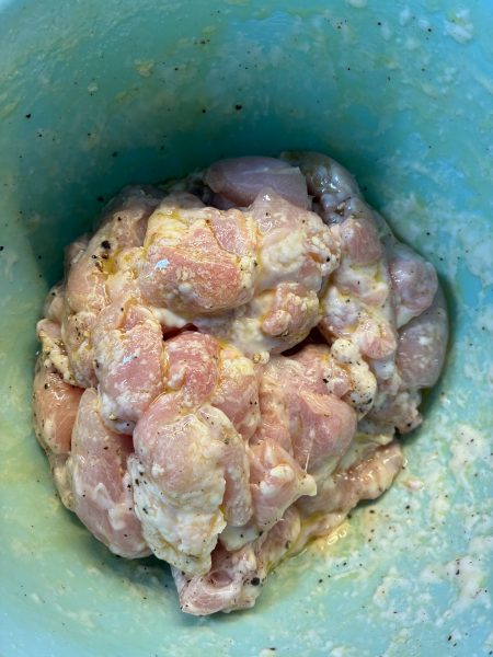 - Öljy marinadissa toimii erottelijana; se estää kananpaloja liimautumasta toisiinsa kiinni paiston alkuvaiheessa.